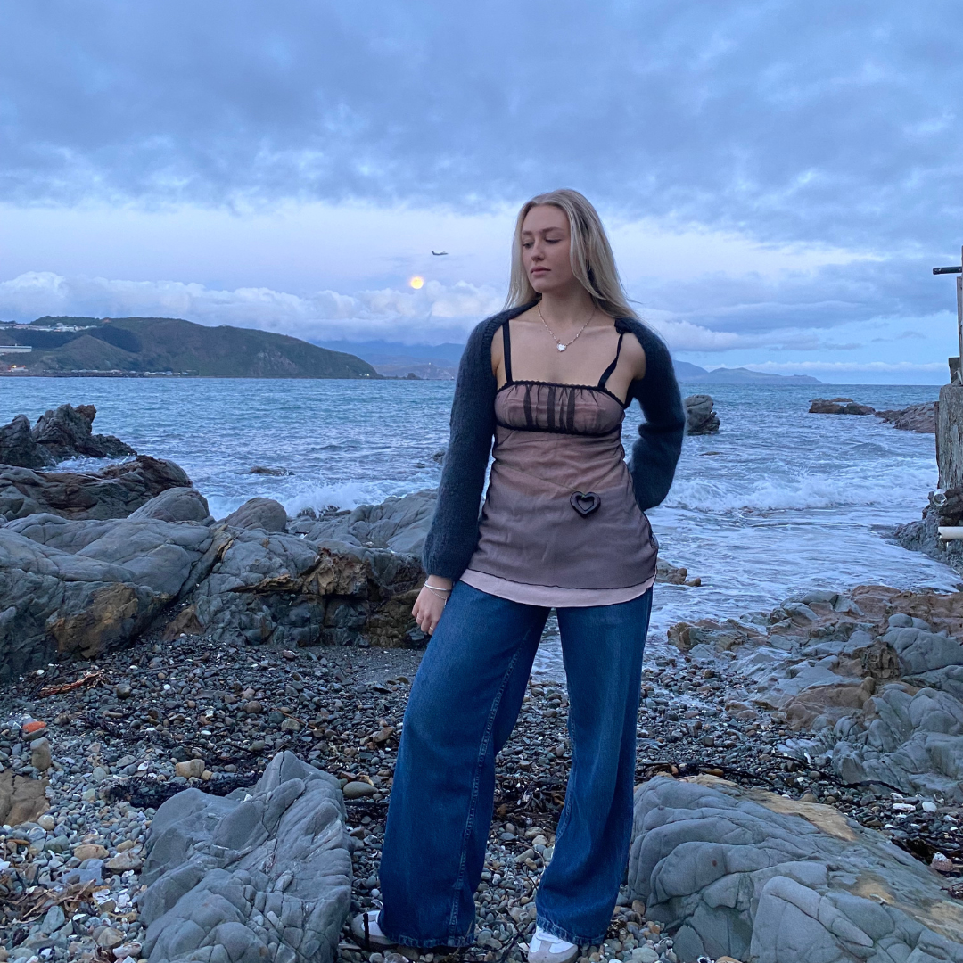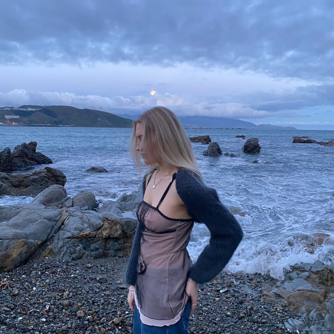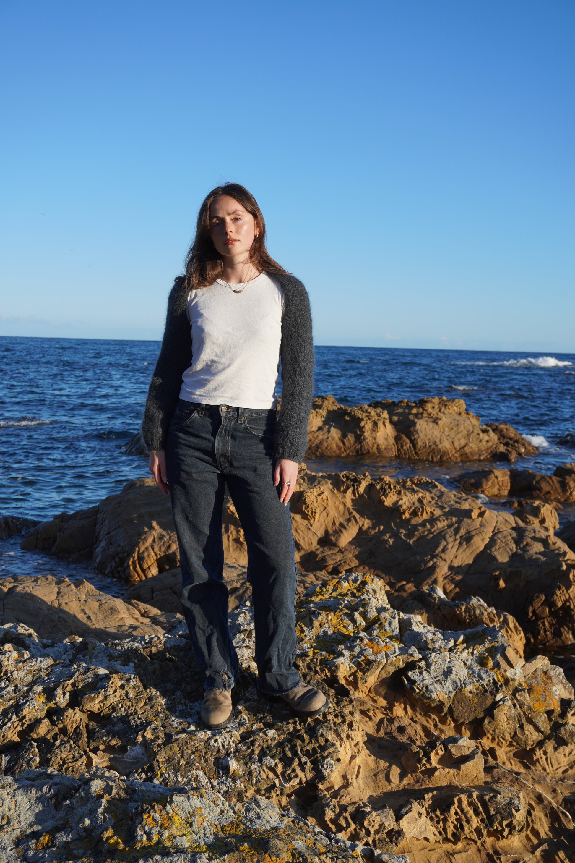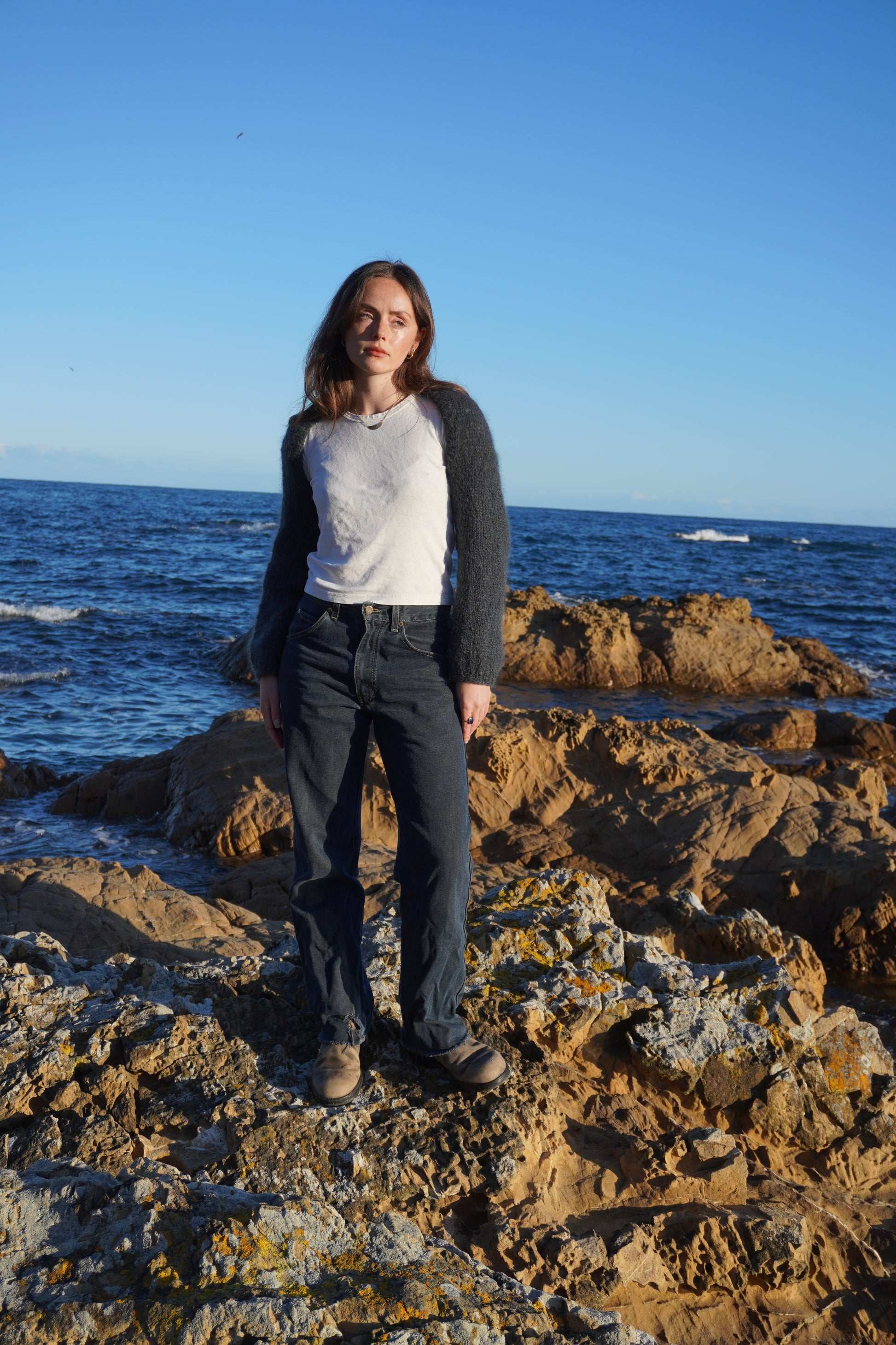 The Giovanna Bolero is a versatile layering piece inspired by vintage boleros, featuring beautiful New Zealand mohair.