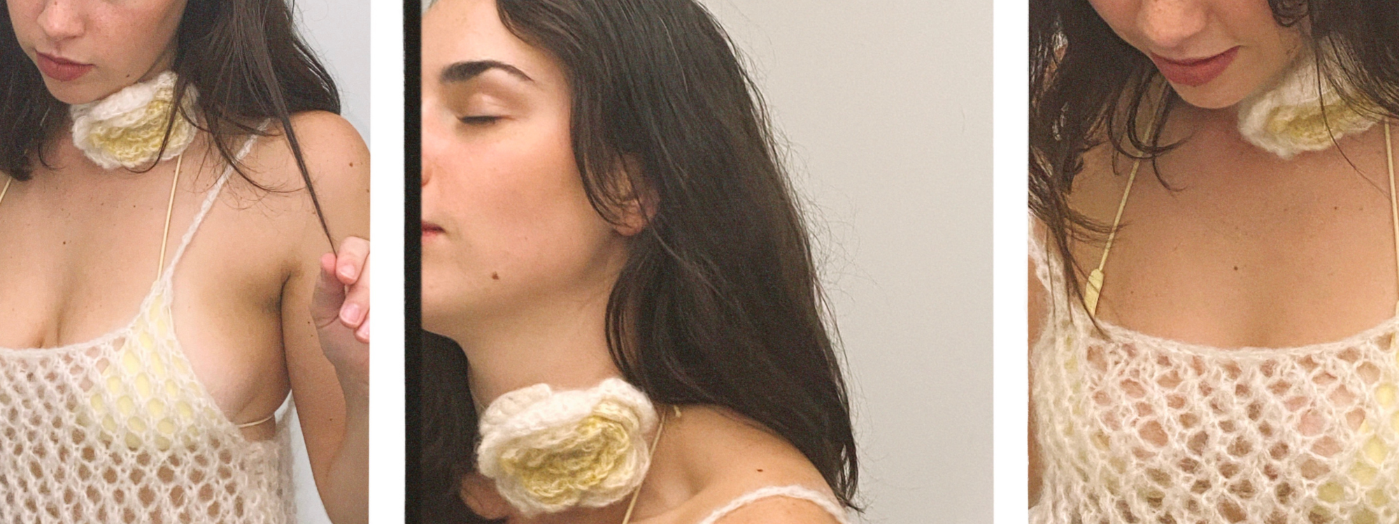 Yarn composition: 94% NZ kid mohair and 6% nylon binder; Hand-dyed and hand-spun yarn: 65% kid mohair, 25% wool and 10% silk.